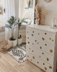 These beautiful Baby Room Stickers are perfect for adding a touch of style and personality to your little one's nursery. Made from environmentally friendly PVC, they are completely safe for your baby's room. They are also super easy to apply, just peel and stick! With their fun polka dot design and warm vintage tones, these Baby Room Stickers are sure to become a favorite part of your nursery decor.